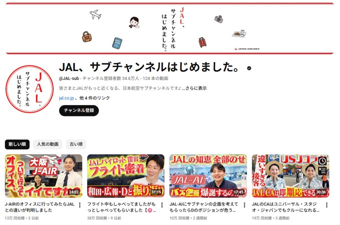 そんな中でも大成功していると言えるのが日本航空の「JAL、サブチャンネルはじめました。」ではないだろうか?
