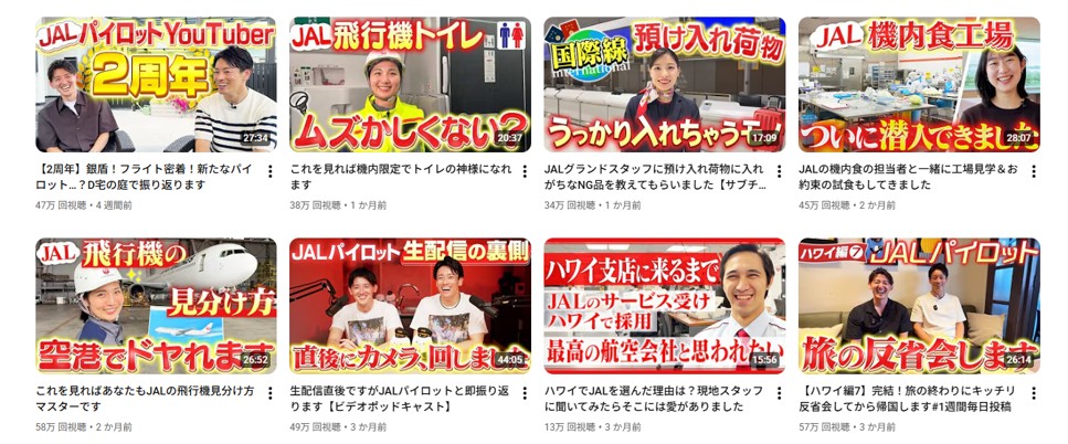 そして、チャンネル開設時は、日本航空という企業名は確かにアドバンテージになっていたと思うが、これほど登録者数を伸ばした背景には、“なるほど”な戦略が随所にあった。