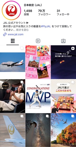 Instagramは、旅行には興味があるけど航空会社にはこだわりがないといった、JALとの距離が遠い方にもコンテンツが届くように意識しています。