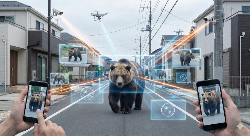 スマートフォン、ドライブレコーダー、防犯カメラ、監視カメラ。日本は今や、世界でも稀な「全方位撮影国家」です。かつてクマは、足跡、爪痕、食い荒らされた畑といった「痕跡」で語られる存在でした。