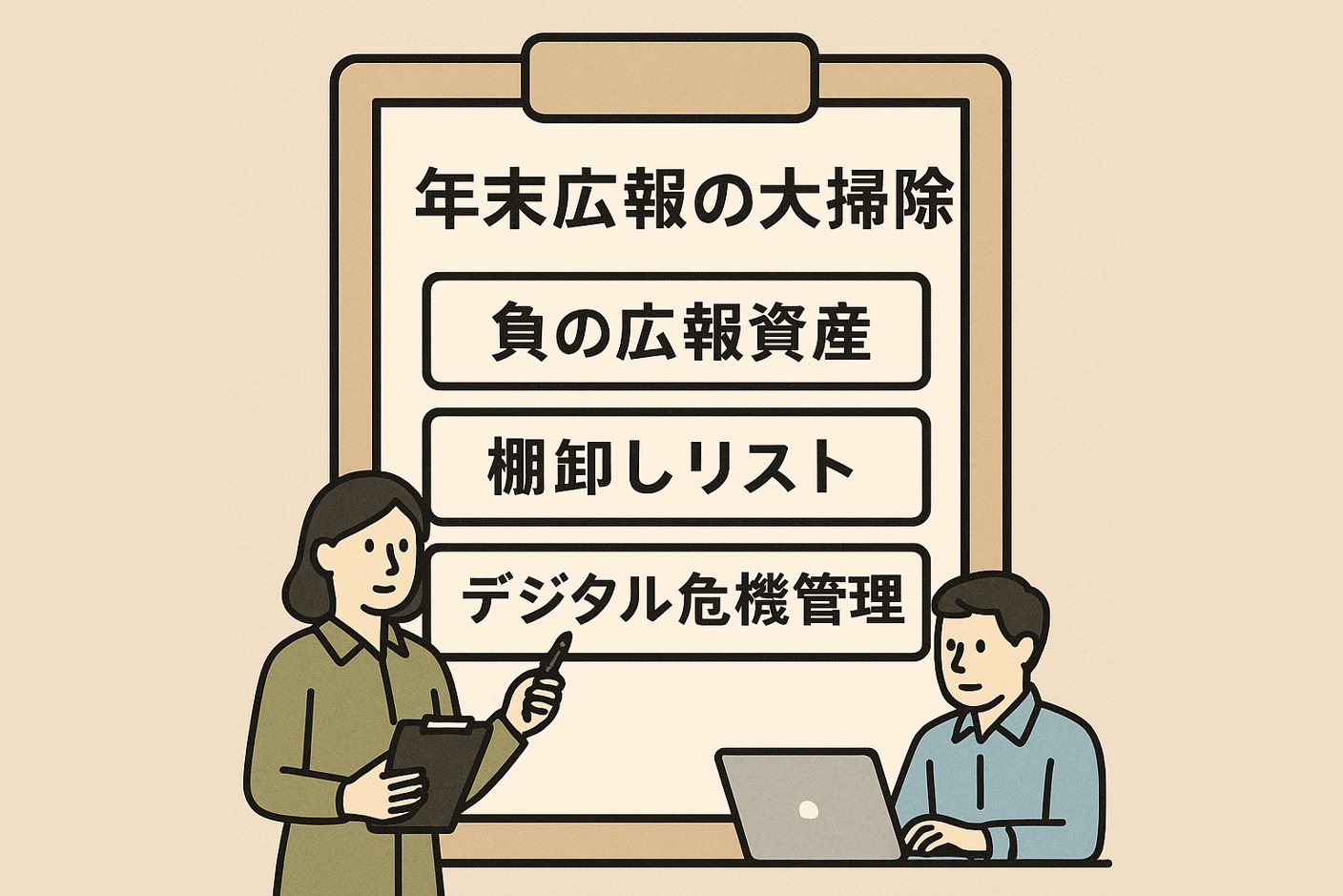年末に近づく 11月は「整備の月」と考え、このタイミングで、広報資産の棚卸しとデジタル危機への備えを進めることをおススメします。今回は、現場ですぐに実践できる「年末の大掃除リスト」をご紹介します。